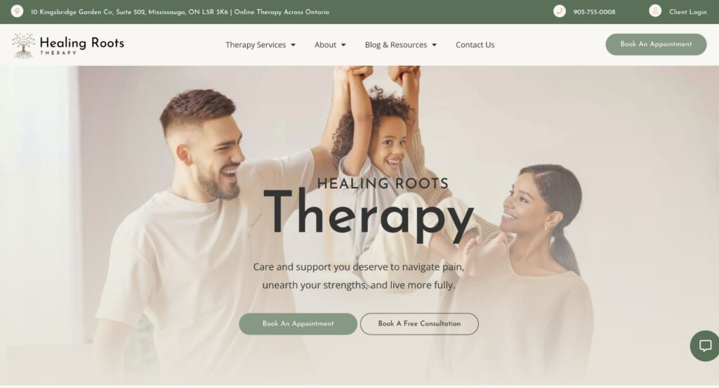6. Healing Roots Therapy: Best Therapy Website Design for Large Group Practices