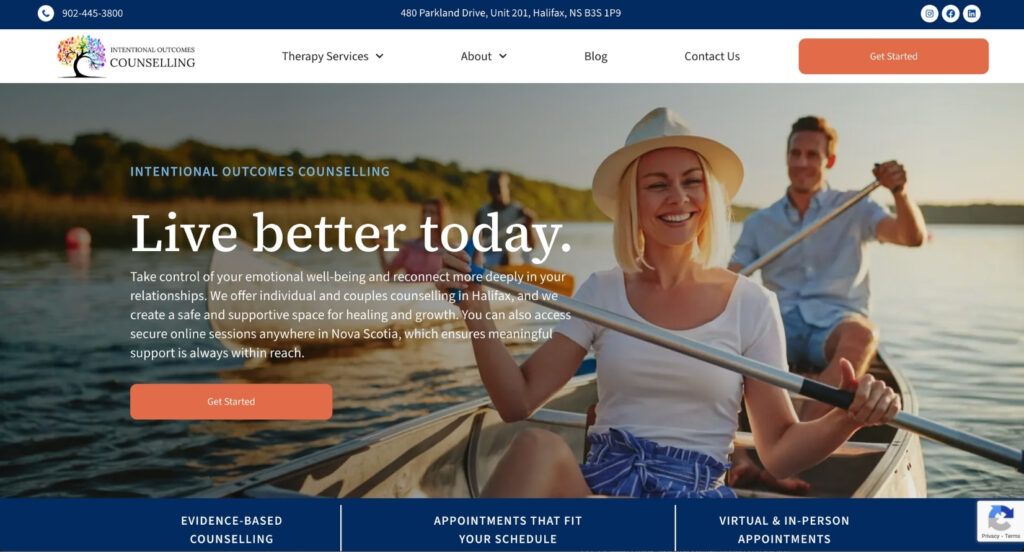 You don’t need the fanciest design or the most unique branding to have an effective therapy website. What you need is clarity, ease of navigation, and multiple conversion pathways. Intentional Outcomes nails the fundamentals, and fundamentals are what convert visitors into clients. Sometimes the basics, done really well, are all you need in counselling website design. This is what the best therapist websites for solid execution look like.