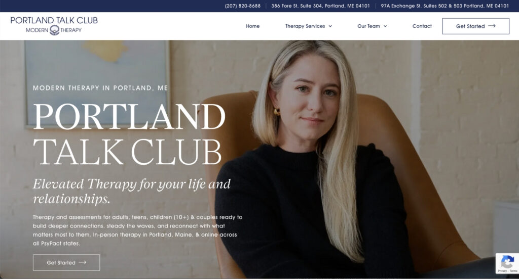 1. Portland Talk Club: Best Therapist Website Example for Boutique Positioning