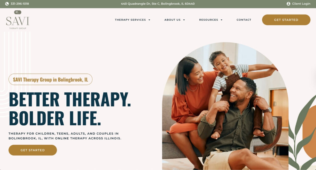 4. Savi Therapy Group: Best Therapist Website for Premium Positioning