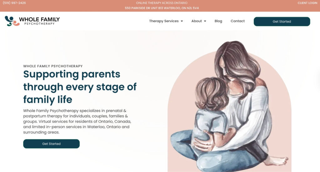 When you deeply understand your niche, you can design everything to speak directly to them. Whole Family Psychotherapy doesn’t try to be everything to everyone. They focus on perinatal mental health, and every single element of their therapy website reinforces that focus. That clarity is what makes them stand out and what makes people choose them over generalist practices. This is what the best therapy websites for niche practices look like.